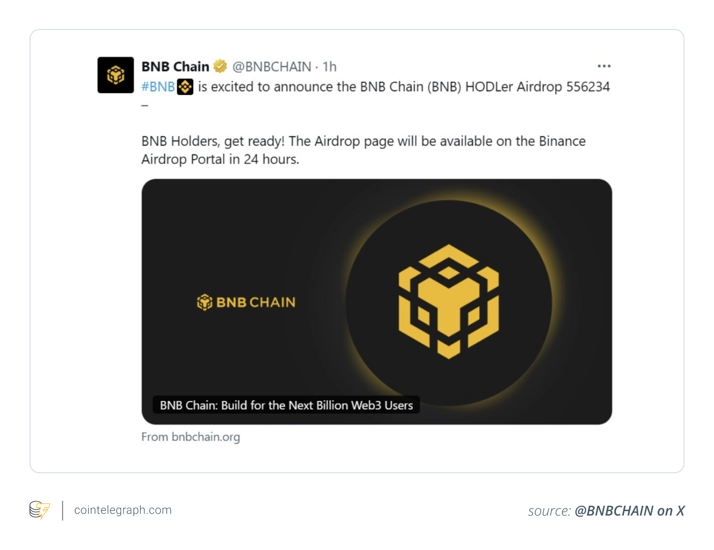 BNB Chain'in resmi X hesabı ele geçirildi ve yaklaşık 4 milyon takipçiye kimlik avı bağlantıları gönderildi. Ekip daha sonra kontrolü ele alarak uyarılarda bulundu. Kaosun ortasında saldırganın yalnızca “4.000 dolar” kazandığına dair bir şaka ortaya çıktı.